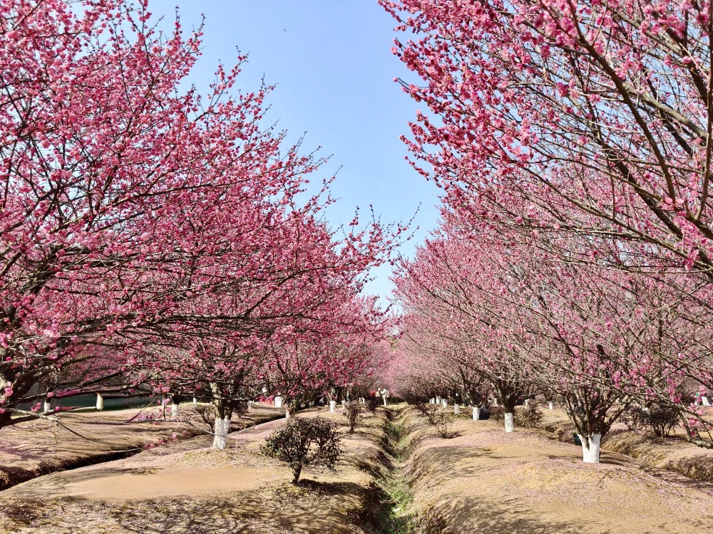 江夏梁子湖畔的小朱灣,有一片豐碩的梅林,數(shù)百顆紅梅正燦爛盛開,被江夏人稱為梅花海。...